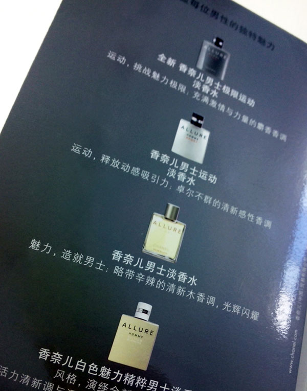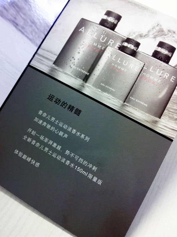 魅力男士運動淡香水——帶上激情與夢想前進吧!運動的精髓,香奈兒男士運動淡香水系列,加速奔馳的心跳聲,開始一場澎湃激越,勢不可擋的沖刺,全新香奈兒男士運動淡香水150ml限量版,趕快速來體驗巔峰快感吧!折頁設計最后一個版面給每一種香水展示而出,從上往下分別展示,顯得非常有層次,每一種香水的品牌都能帶給你一種獨特的感受??侦`標志設計,和別人有何不同?空靈立足于北京上海一線城市空靈年輕、敏銳,生氣勃勃空靈,匯聚各路精英的思維能量,天馬行空的想法,。