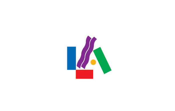 logo用簡單的圖形以及豐富的色彩組成字母L和A,并將其疊加在一起為標志圖案