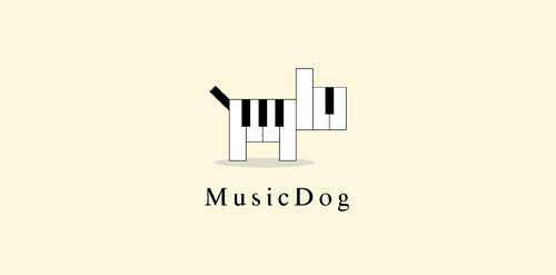 鋼琴與狗狗的形象結(jié)合為LOGO設(shè)計(jì)
