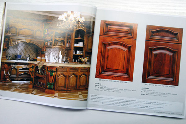 此內(nèi)頁是具體的產(chǎn)品展示,左側(cè)是整體的廚房展示,各個(gè)櫥柜小樣設(shè)計(jì)精美,做工精致,將萊特伯爵家具的古典雅致體現(xiàn)的淋漓盡致,右側(cè)頁面則是具體的展示其中的某個(gè)細(xì)節(jié),介紹的了家具的造型、顏色、材質(zhì)、涂裝工藝、特征、適宜制作的的種類,并詳細(xì)介紹了涂裝工藝說明。